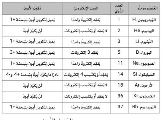 عِندَ تَكونِ الأَيونِ، يَتغيَّرُ مُستوى الطاقةِ الرَّئيسُ الَّذي يَحتوي على إلكتروناتِ التكافؤ. ✔️