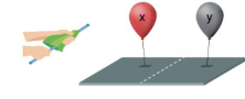 إن شحنة البالون Y معاكسة لشحنة البالون X لذا ينجذب للعصا و يكون موجب الشحنة