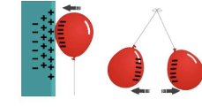البالونان على يمين الصورة لهما نفس الشحنة، لذا يتنافران إذا تلامس أحدهما مع الحائط