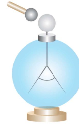 تكون شحنة المقبض الفلزي معاكسة لشحنة العصا