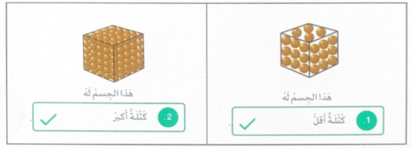 اسحب العبارات وأفلِتْها لِمُقارنة كتلة الجسمين بشكل صحيح.