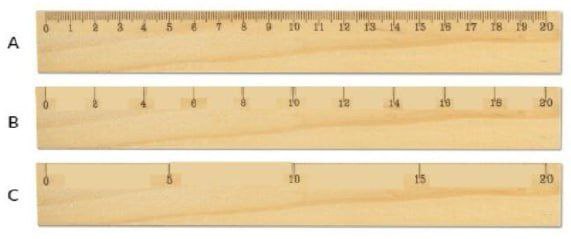 ادرس المساطر الأربعة أدناه، ثم حدد المسطرة التي تعطي القياس الأكثر انضباطا
